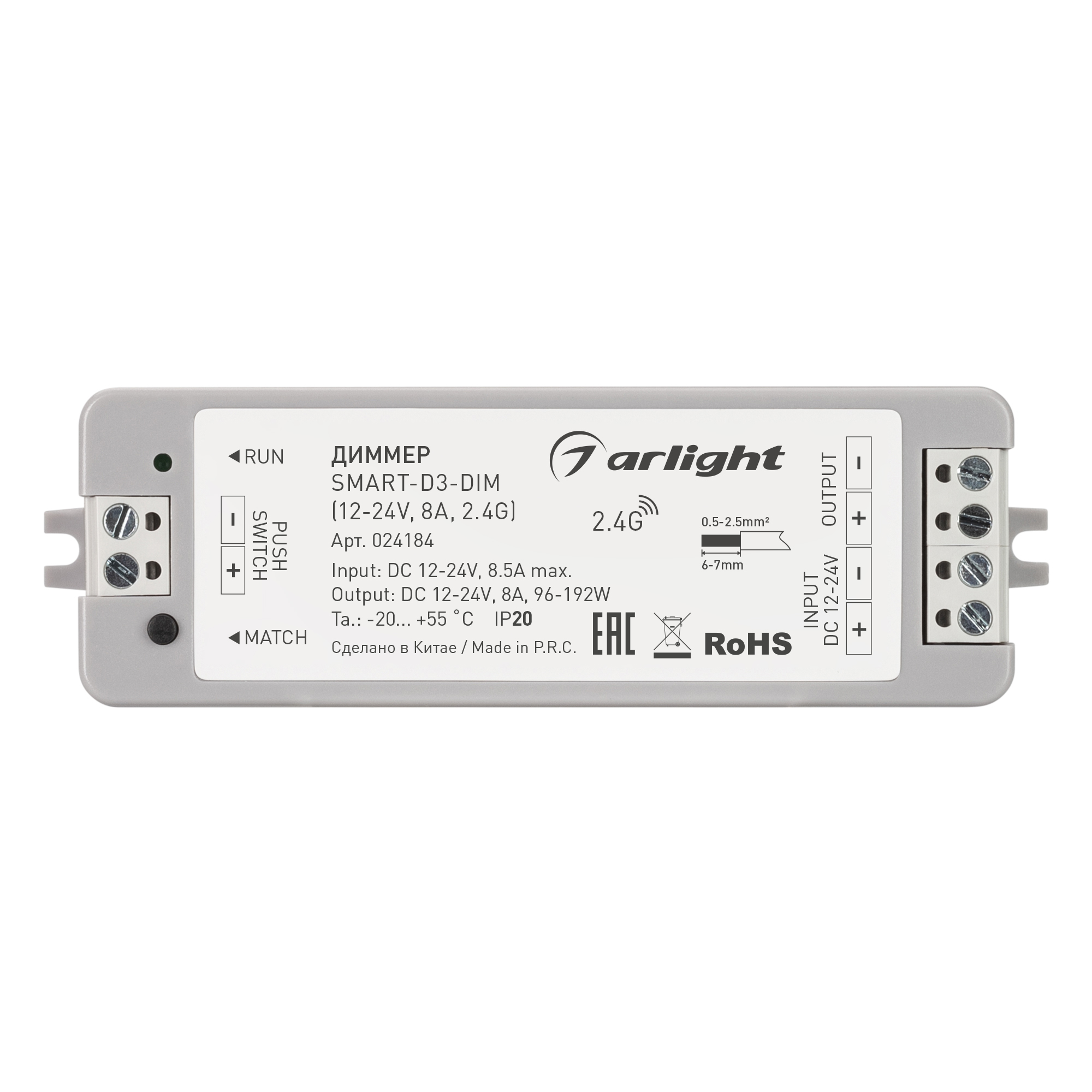 Диммер SMART-D3-DIM (12-24V, 8A, 2.4G) (Arlight, IP20 Пластик, 5 лет) 024184 в Калуге
