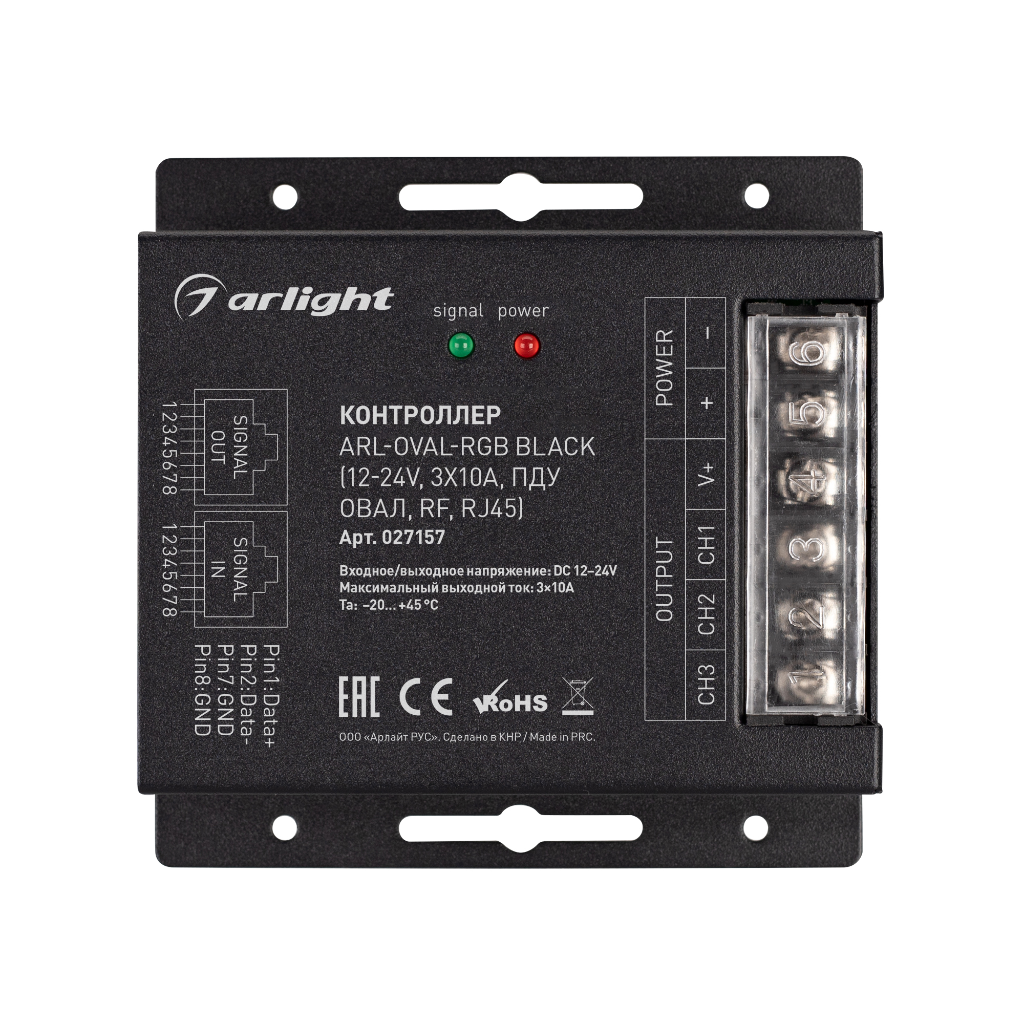 Контроллер ARL-OVAL-RGB Black (12-24V, 3x10A, ПДУ Овал, RF, RJ45) (Arlight, IP20 Металл, 3 года) 027157 в Калуге