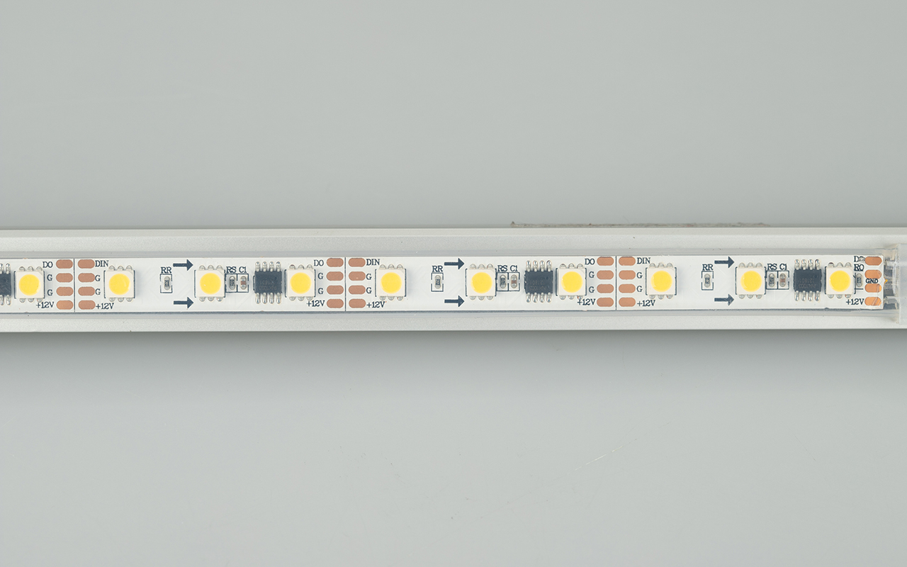 Герметичная лента «бегущий огонь» с драйвером 1804. Светодиоды SMD 5060 (60 шт/м) теплого белого цвета свечения (3000 К) в силиконовой трубке с высокой степенью пылевлагозащиты (IP66). Встроенный в ленту контроллер с циклическим автозапуском 17 программ (auto mode), возможно подключение внешнего контроллера. Ширина платы 12 мм, мощность 13.2 Вт/м, напряжение питания 12 В. Применяется для создания разнообразных световых эффектов: от самого простого «бегущего огня» до уникальных динамических спецэффектов. Минимальный отрезок 50 мм (3 светодиода).