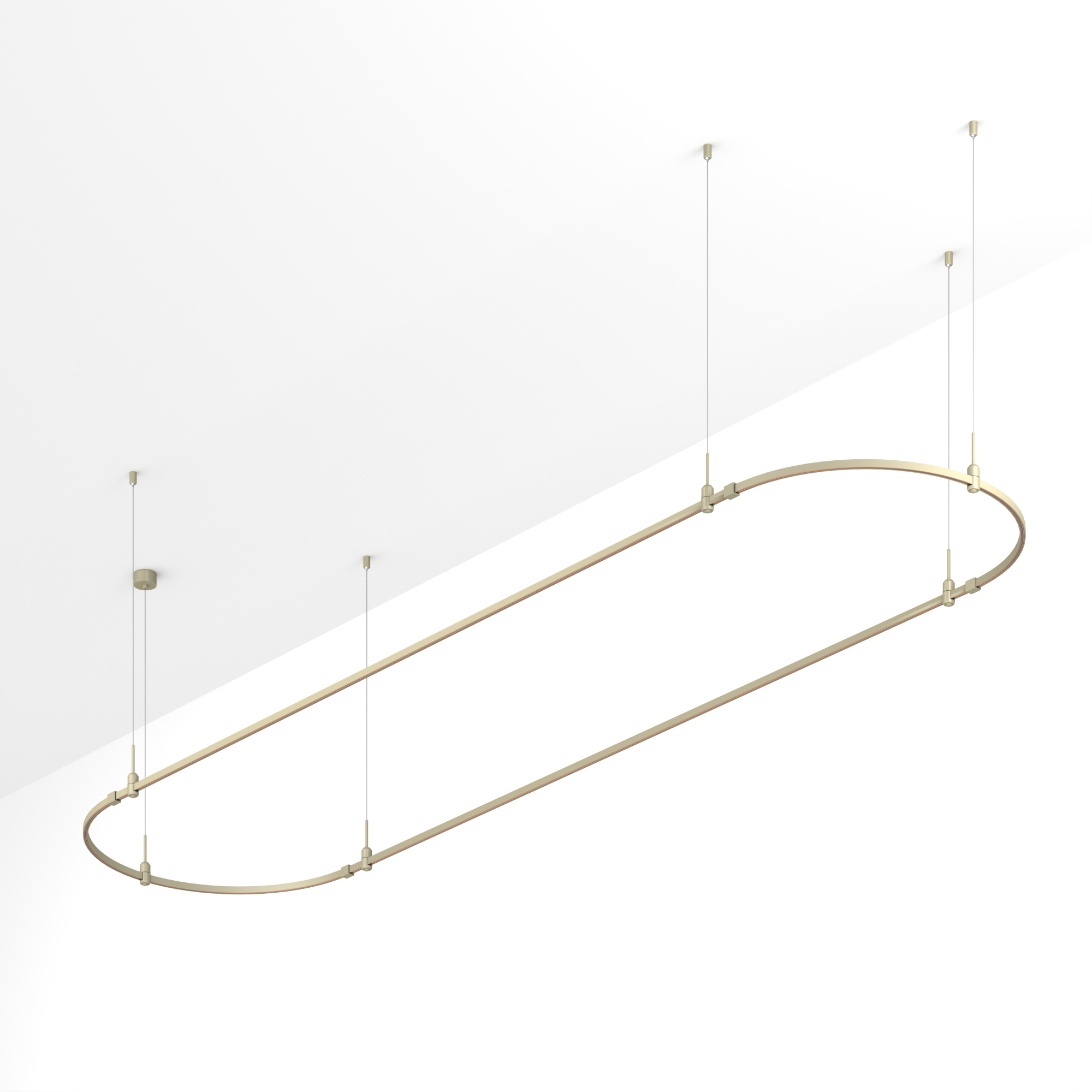 Подвесная конструкция APRIORI, форма овал. В комплекте треки с аксессуарами и гибкими подвесами. DC48V. Материал алюминий, цвет серо-оливковый. Размер ДxШxВ: 4000x1000x22мм. Светильники и источники питания приобретаются отдельно.